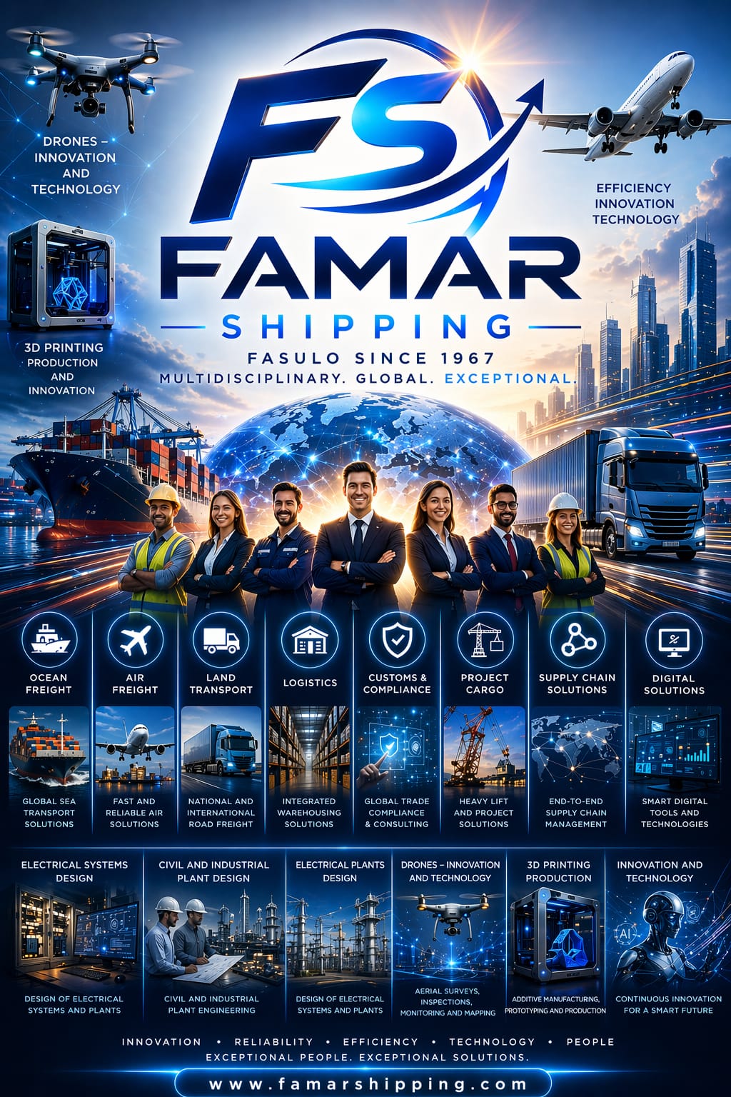 FAMAR SHIPPING is far more than a traditional freight forwarder; it is a powerhouse of ideas and high-end engineering. Built on a legacy dating back to 1967 as "Fasulo," the company's identity is defined by its multidisciplinary approach. Its core slogan—Multidisciplinary, Global, Exceptional—underscores a corporate profile that serves as a large-scale solution provider across complex industrial sectors, where visionary thinking meets technical precision.